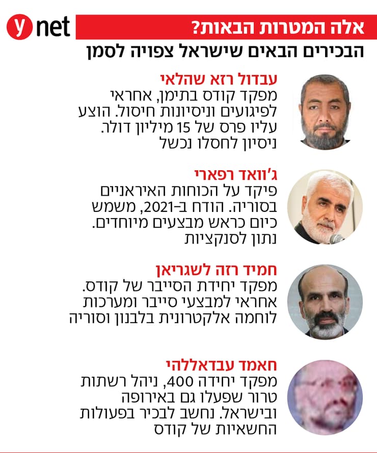 במהלך שהרחיב את היקף הציד אחר הבכירים באיראן, חיסלו אמש והלילה (שבין שישי לשבת) מטוסי קרב של חיל האוויר שניים מהדמויות הבולטות ביותר במשמרות המהפכה - בהנאם שהריארי, מפקד יחידת ההברחות של כוח קודס, וסעיד איזדי, מפקד "גיס פלסטין" והאחראי על הקשר עם חמאס.