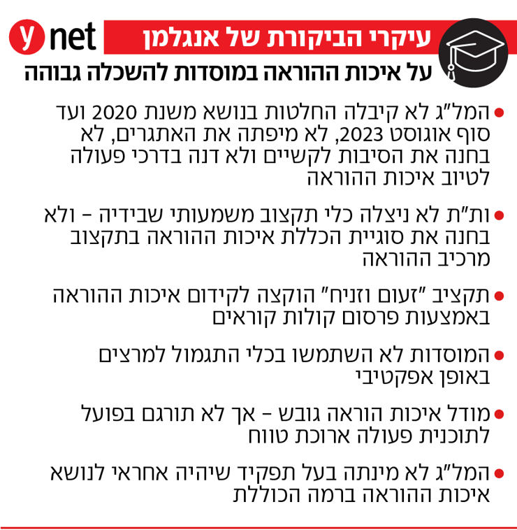 זו תמונת המצב העולה מביקורת מבקר המדינה באשר לאיכות ההוראה במוסדות להשכלה גבוהה: