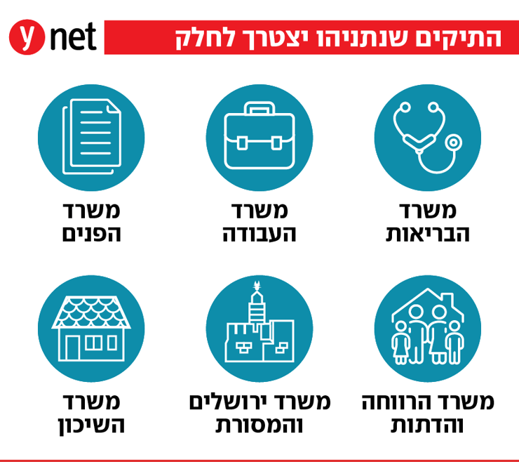 עם כניסת התפטרות השרים של ש"ס - חלקם כאמור לא תוך יומיים - יתפנו משרדי הבריאות, העבודה, הפנים, הרווחה, והדתות. התפטרותם של אנשי יהדות התורה פינתה שני את משרד ירושלים ומסורת. קודם לכן, עם התפטרותו של יצחק גולדקנופף, התפנה משרד השיכון - שעבר לידיו של השר חיים כץ מהליכוד.