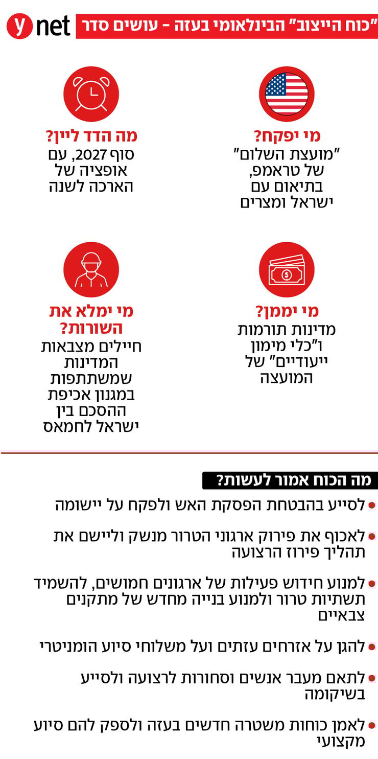 ראש הממשלה הוסיף כי "בשיתוף פעולה עם ארה"ב ומדינות אחרות שחתומות על התוכנית, אנו מצפים לקבל את כל החטופים החללים ללא דיחוי, ולהתחיל בתהליך פירוק רצועת עזה מנשק וסיום שלטון חמאס בה. ישראל מושיטה את ידה לשלום ולשגשוג לכל שכנינו, וקוראת להם לנרמל את היחסים איתנו ולהצטרף אלינו בגירוש חמאס ותומכיו מהאזור".