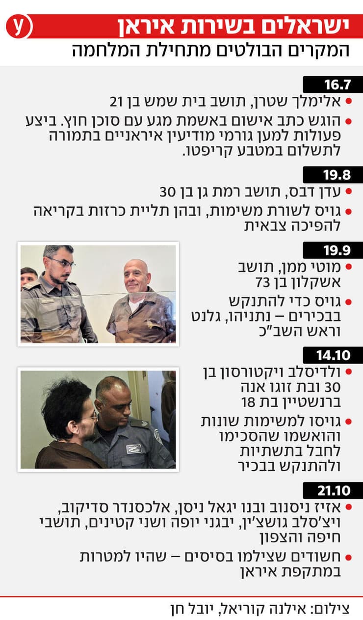 "המפתח להתמודדות עם זה הוא קודם כל ענישה חמורה שתרתיע. שאנשים יבינו שזה בגידה, פגיעה בביטחון המדינה, שירות בשביל האויב בזמן מלחמה", הוסיפו אותם גורמים בשב"כ ואמרו כי "נכון לבחון סנקציות מנהליות וכלכליות לאותם אזרחים ישראלים שמשתפים פעולה עם איראן - בכלל זה שלילת אזרחות, חילוט כספים ורכוש".