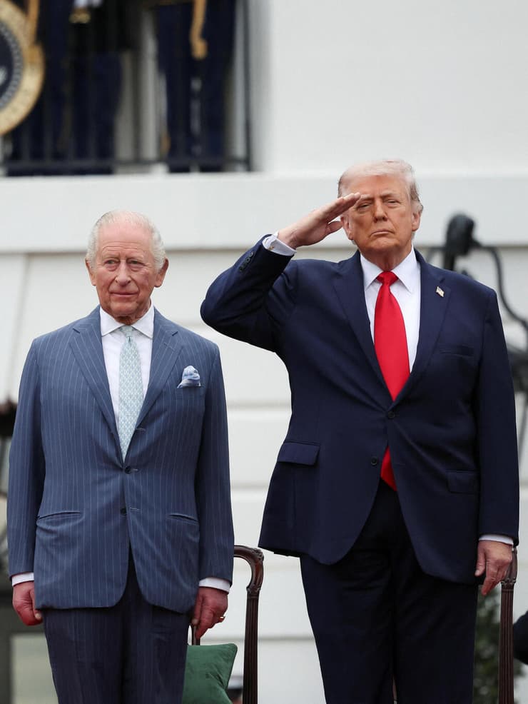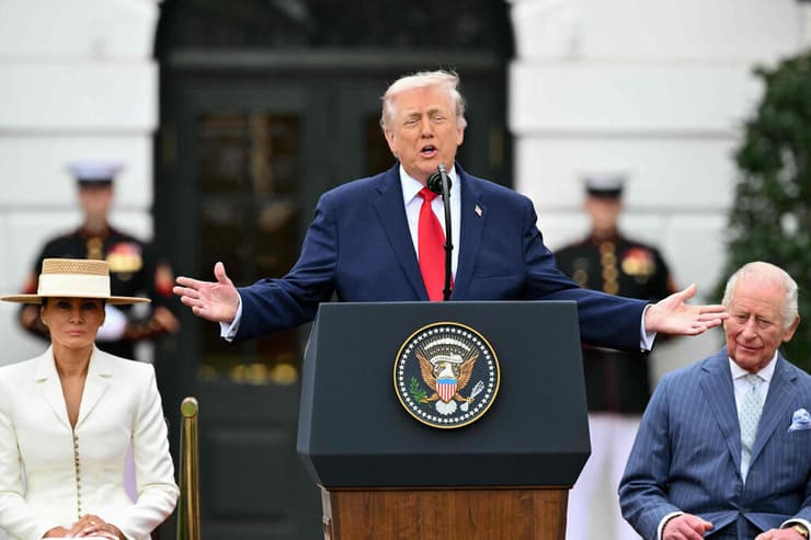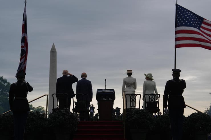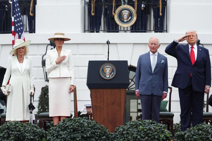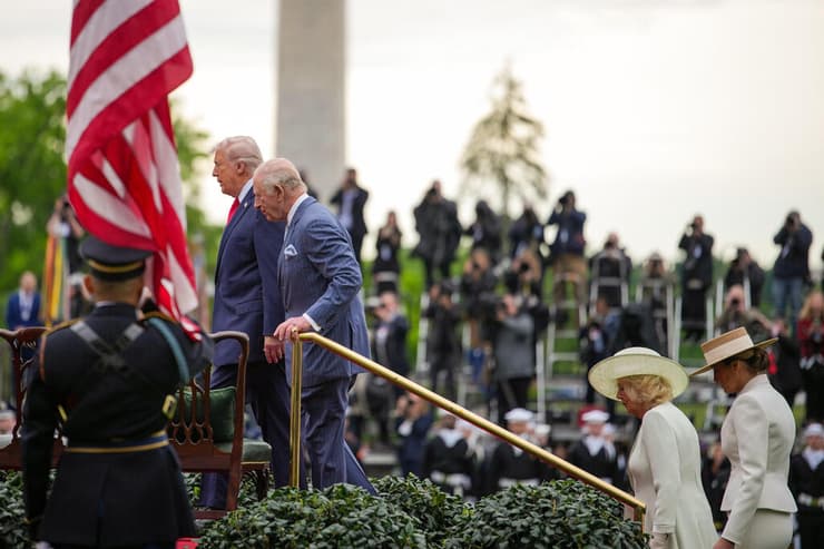נשיא ארה"ב דונלד טראמפ ערך אחר הצהריים (יום ג') טקס קבלה רשמי למלך בריטניה צ'רלס השלישי, שהגיע לשם כבר אמש במסגרת ביקורו הרשמי הראשון כמלך בארה"ב. בטקס נשא טראמפ דברים בשבחה של משפחת המלוכה הבריטית, ונמנע מלהתייחס למשבר העמוק ביחסיו עם ראש הממשלה קיר סטרמר, שעליו הוא זועם בשל סירובו לסייע לארה"ב במלחמה מול איראן. במקום זאת הדגיש טראמפ את הקשרים ההיסטוריים ההדוקים בין שתי בעלות הברית לאורך המאה האחרונה: "אני בטוח שהקשר המקודש בין ארה"ב לבריטניה ימשיך עמוק אל תוך העתיד", אמר טראמפ.