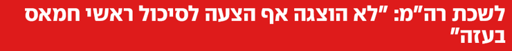 “חרף זאת, במהלך שנת 2023 – ובפרט בתקופה שקדמה לטבח 7 באוקטובר – לא הוצגה בפני ראש הממשלה אף הצעה לסיכול ראשי חמאס בעזה, או מוכנות מלאה לכך. יתרה מכך – גופי הביטחון אף המליצו שלא לעשות זאת.