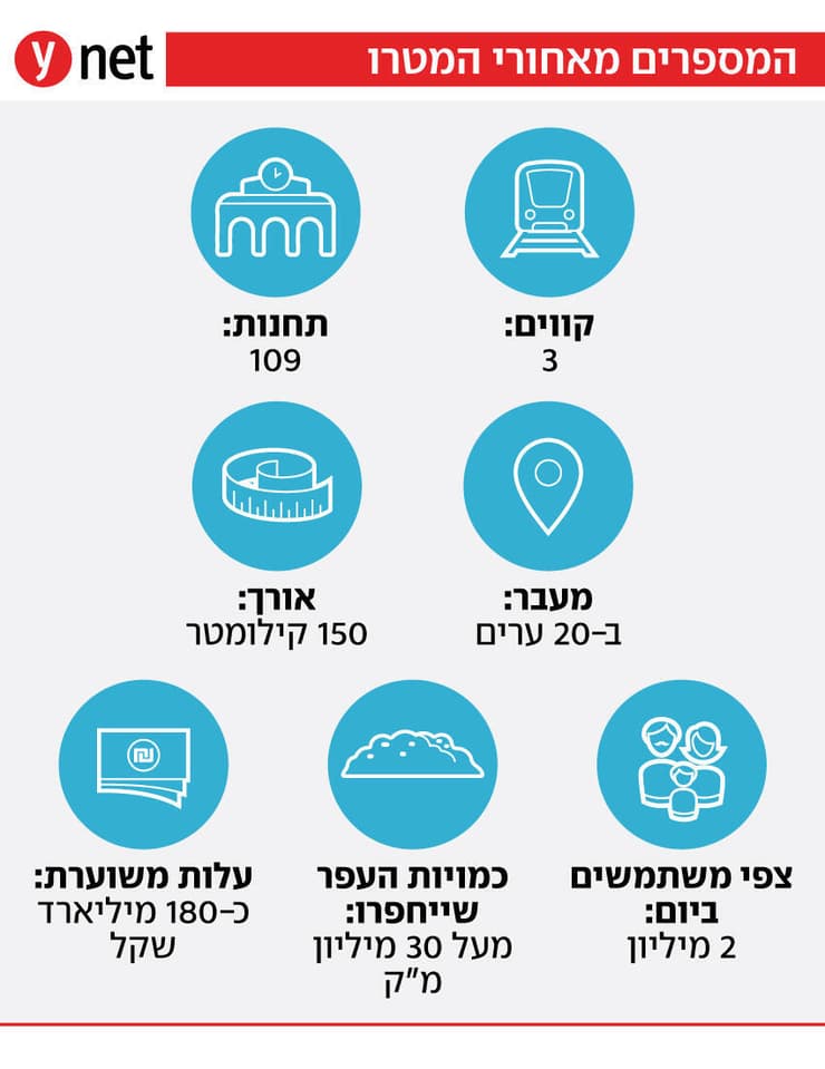 מדובר באות הפתיחה לעבודות שצפויות לשנות את פני התחבורה במטרופולין תל אביב - הלב הפועם של הכלכלה הישראלית, שסובל מדי יום מפקקי ענק. המועד הרשמי לסיום העבודות הוא ב-2035, אך כעת כמעט ברור שהמטרו לא יגיע ליעד במועד.