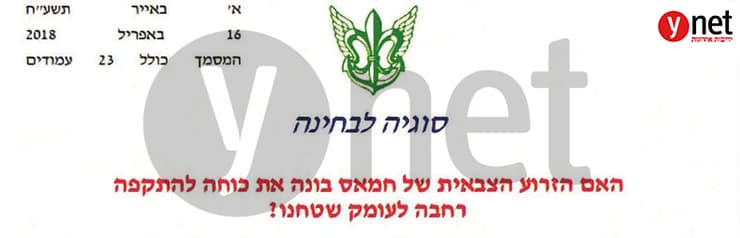תחת הכותרת "סוגיה לבחינה", פורמט מיוחד של קהילת המודיעין המופק בכל פעם שמתקבל מידע חדש ודרמטי הסותר מידע קיים, נכתב בכותרת המשנה: "האם הזרוע הצבאית של חמאס בונה את כוחה להתקפה רחבה לעומק שטחנו?".