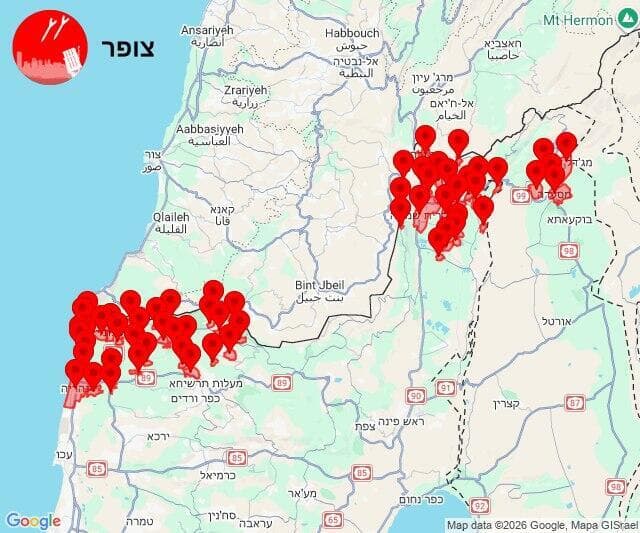 אזעקות הופעלו ביפתח, מלכיה, רמות נפתלי ומרכז אזורי מבואות חרמון שבגליל העליון, בעקבות חדירת כלי טיס עוין מלבנון. התושבים מתבקשים להיכנס למרחבים המוגנים.