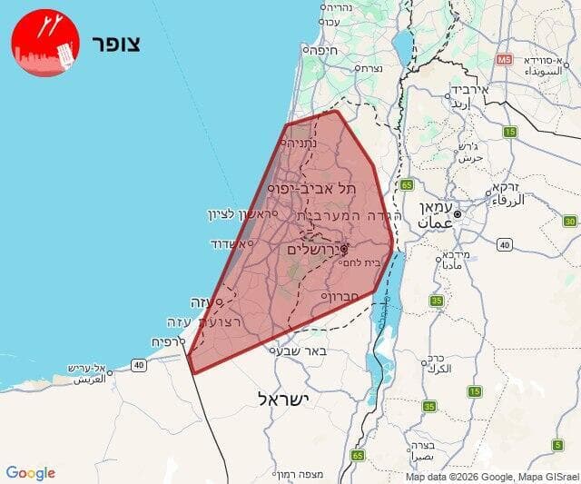 איראן שיגרה לעבר ישראל טיל מתפצל, שהוביל להפעלת האזעקות במרכז הארץ. הדי פיצוצים נשמעו באזור המרכז.