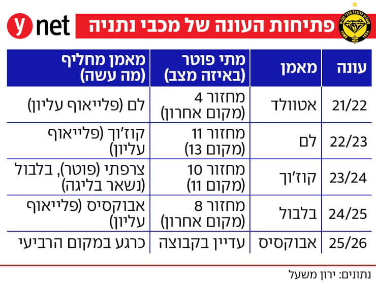 שלושת הניצחונות האחרונים, על מכבי חיפה, הפועל ת״א וקריית־שמונה, הקפיצו את נתניה למקום הרביעי (ותודה גם לבית הדין שהפחית להפועל ת"א שתי נקודות) - משימה שנראתה אבודה עבור הקבוצה, שהחליפה בקיץ בעלים ונראתה כמי שמחפשת כיוון.