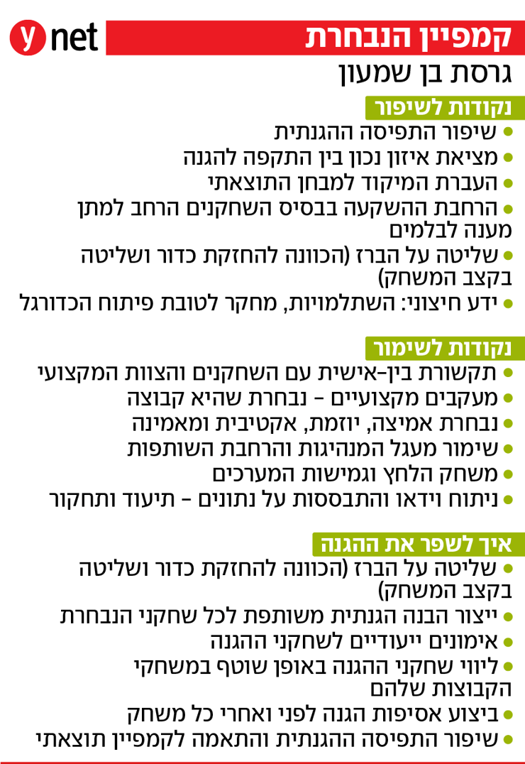 הפרזנטציה שהציג רן בן־שמעון לסיכום מוקדמות המונדיאל בפני הוועדה המקצועית של ההתאחדות, הגיעה לידי "ידיעות אחרונות" ו־ynet. מדובר במסמך שממחיש איך רואה המאמן הלאומי את הקמפיין ומהן מסקנותיו ותוכניותיו לקראת מוקדמות יורו 2028. זו הפעם הראשונה שמסמך שכזה, הכולל שקפים רבים, נחשף בתקשורת, מאחר שמדובר בוועדה פנימית שסירבה עד היום לחשוף סיכום קמפיין.