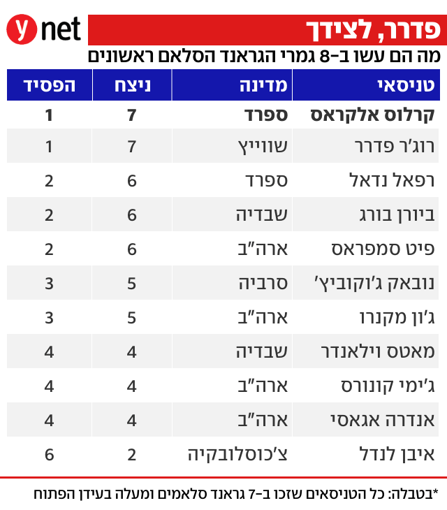 רפאל נדאל ישב בין 14 אלף הצופים ברוד לייבר ארינה וראה בן ארצו הספרדי, המדורג 1 בעולם, שובר את שיאו. רפא השלים זכייה בכל ארבעת המייג'ורים בגיל 24, וקרלוס עשה את זה שנתיים מוקדם יותר! אגב, רוג'ר פדרר היה בן 27 כשהשלים את המבצע וג'וקוביץ' ואנדרה אגאסי היו בני 29.