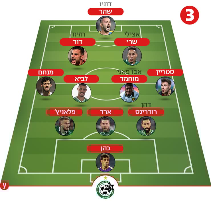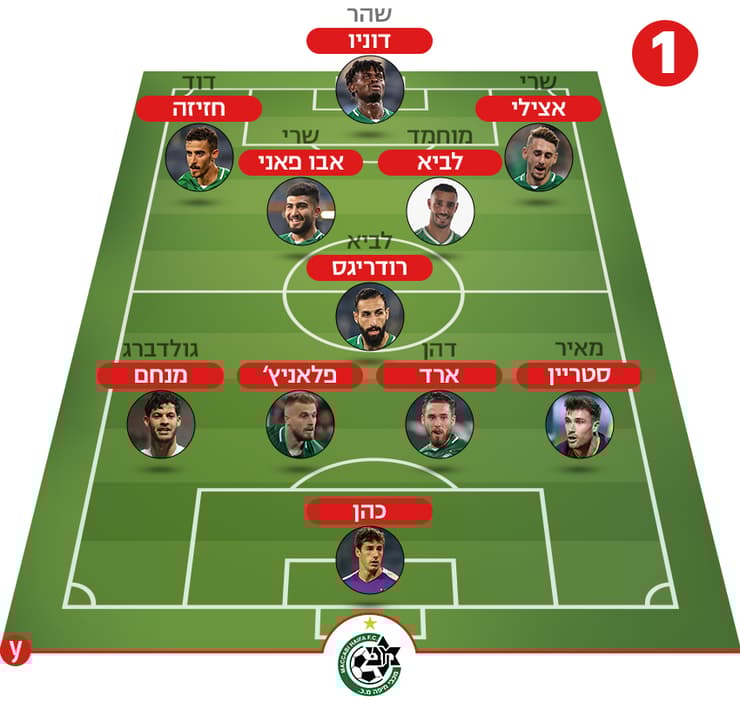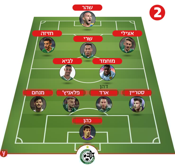 אפשר להניח שבליגה נראה ברוב המשחקים מערך אחר, 4־2־3־1. למה? כיוון ששילוב בין לביא למוחמד יבוא לידי ביטוי באופן הטוב ביותר בצורה הזאת. יש כמה הבדלים בין המערך הזה לדרך בה תשחק מכבי חיפה הערב. מערך 4־3־3, כפי ששיחקה חיפה ברוב העונה שעברה (מגרש מספר 1 בתרשים המצורף), מותאם יותר להחזקות ארוכות בכדור בעוד 4־2־3־1 נוח יותר למשחק "ישיר". מה הכוונה? פחות מסירות קצרות ולצדדים ויותר דחיפה מהירה קדימה. מוחמד לא מניע כדור כמו אבו־פאני, אבל בדומה ללביא הוא יודע לצאת עם הכדור בדריבל קדימה. המערך הזה (מגרש מספר 2) והשילוב הזה גם יכולים להפוך את משחק הלחץ של מכבי חיפה לעוצמתי. בקיצור, לבכר יש עכשיו אפשרות טובה יותר למשחק מהיר וישיר ולא כזה שמתבסס בהכרח על המון מסירות.