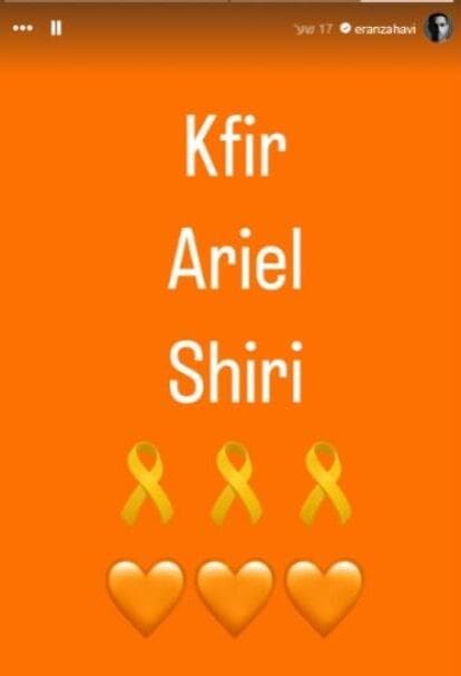 ברשת הופצה תמונה עם איור של בני משפחת ביבס, ועליה המילה סליחה. בין אנשי הכדורגל ששיתפו אותה היה אפשר לראות את רן זהבי, ברק בכר, אבי נמני, יוסי בניון וליאור רפאלוב. בלם הפועל באר-שבע, מיגל ויטור, שיתף תמונה של הביבסים מיום החטיפה, עם הכיתוב: "הסיוט הכי גודל. התמונה הזאת צריכה להיצרב בתודעה של כל העולם". סוכן השחקנים רונן קצב הוסיף: לעולם לא נשכח – ואסור שיישכח". בקרב השחקנים הזרים, אקס מכבי חיפה והפועל ת"א, חוסה רודריגס, צייץ לבבות כתומים.
