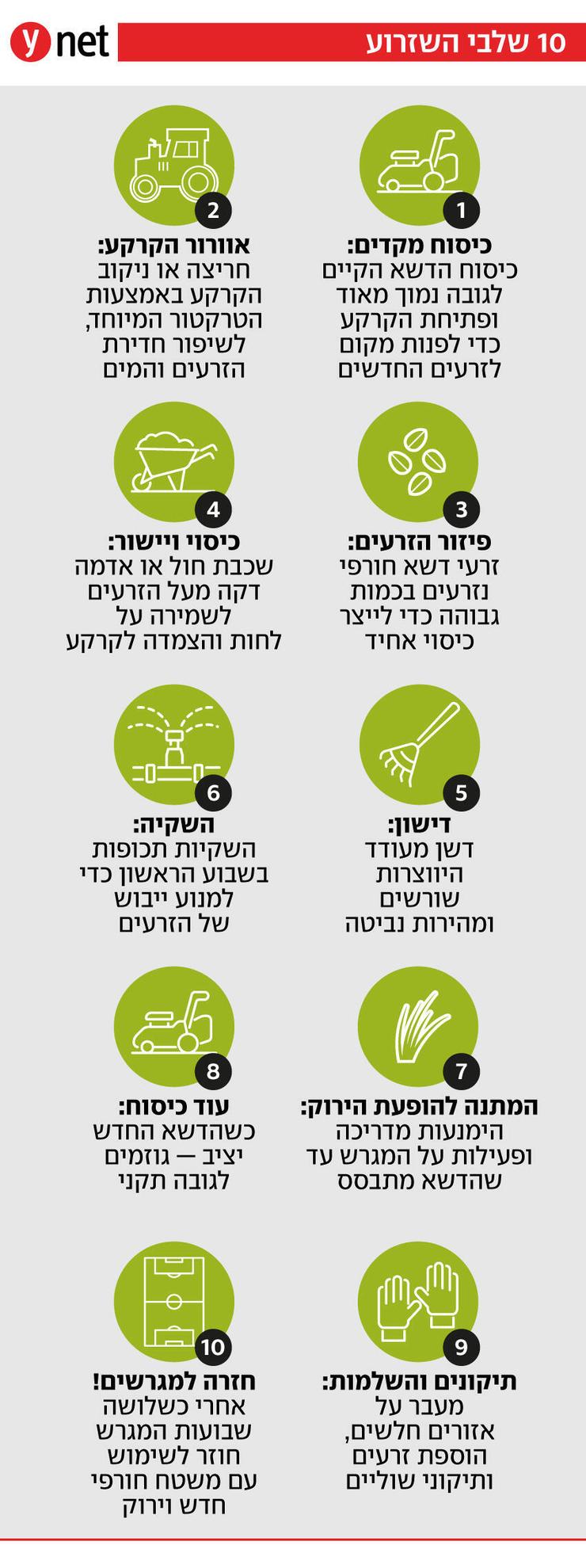 עניין נוסף הוא הגיזום – לדשא חורף יש גובה אידיאלי של כ־20 עד 22 מילימטרים, שמבטיח תנועה חלקה של הכדור ואחיזה טובה לשחקנים. "אסור שהדשא יגיע ל־24 מילימטרים, אז הכדור נתקע טיפה ויותר קשה לרוץ איתו. יש מדידות מיוחדות, בטח לפני משחקים בינלאומיים", אומר עגייב. והלו"ז צפוף, אם מתעכבים אפילו ביומיים, המגרשים עלולים לא להיות מוכנים עד למשחק הראשון של אחרי הפגרה.