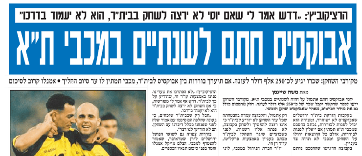 דמיינו את שער 11 שר "להיות איתך בכל דקה, יוסי אבוקסיס". זה היה קרוב מאוד לקרות ב-1999, כשהכוכב של בית"ר ירושלים כבר חתם במכבי ת"א לשנתיים. רק שאוהדי בית"ר לא קיבלו את רוע הגזירה, אחד מהם אפילו התנדב למכור כליה כדי שאבוקסיס יישאר. בתום מסע לחצים אדיר, אבוקסיס התחרט, נאלץ להחזיר למכבי ת"א דמי ביטול, ונשאר בבית וגן כדי להיות סמל נצחי בצהוב-שחור. או שבעצם לא. שנתיים אחר כך הוא עבר ליריבה השנואה הפועל ת"א, והוא גם יחזור על המסלול הזה כמאמן. היום אבוקסיס שנוא אצל שלושת הקהלים (מכבי, הפועל ובית"ר) באותה מידה.