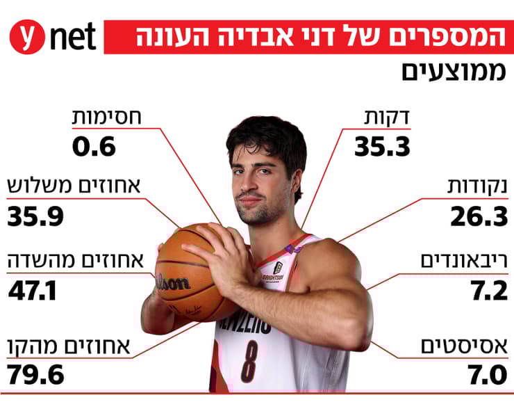 דני אבדיה סיפק הבוקר (חמישי) עוד הופעה ענקית - הפעם עם שיא עונתי של 41 נקודות ב-102:103 המטורף של פורטלנד על יוסטון, הניצחון הרביעי ברציפות של הטרייל בלייזרס והשישי בשבעת המשחקים האחרונים. מדובר בשיא נקודות של אבדיה במדי פורטלנד, כשאת שיא הקריירה, 43 נקודות, הוא קבע במדי וושינגטון בפברואר 2024.