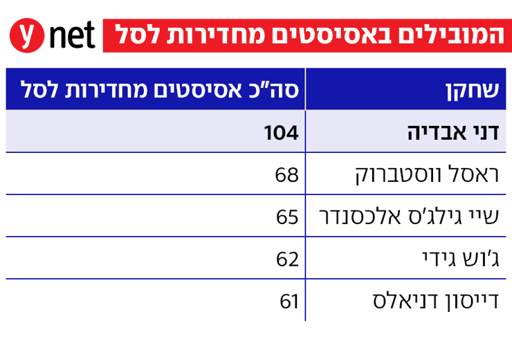 הוא בדרך הנכונה להיות הישראלי הראשון באולסטאר. הוא מועמד לגיטימי להיות הישראלי הראשון באחת מחמישיות העונה. והוא יכול גם להיות הישראלי הראשון שמשחק בפלייאוף ה-NBA. אבל דני אבדיה, בעונה מדהימה, כבר לא שובר רק שיאים בכחול-לבן. הכוכב הגדול של פורטלנד מנפץ שיאי מועדון היסטוריים - ויש גם מדדים שהוא במקום הראשון. לא רק בפורטלנד - אלא בכל הליגה.