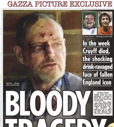 פול גאסקוין, כוכבה לשעבר של נבחרת אנגליה בן ה-48, הוא אחת הדמויות הכי מוכרות בתולדות הכרדורגל הבריטי, אבל כנראה גם אחת הטראגיות שבהן.