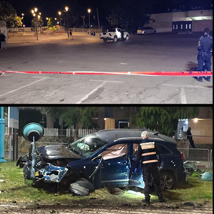 תיעוד מחיפה: רכב צנח אל חצר בניין והתהפך על צידו, שתיים נפצעו