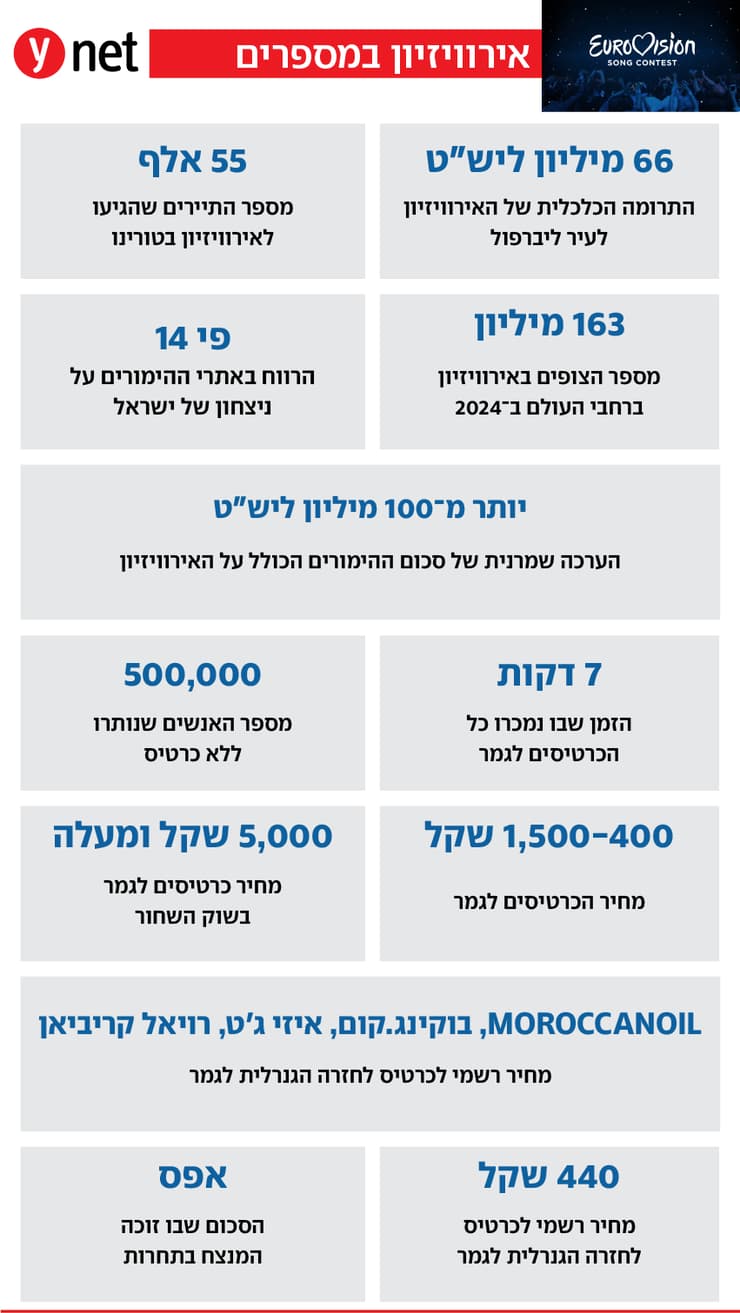 לפי הנתונים, במהלך שבוע התחרות, לינה דרך Booking עולה בממוצע 6,024 אירו – זינוק של 139% לעומת השבוע שלפני האירוויזיון, ושל 137% לעומת השבוע שאחריו.