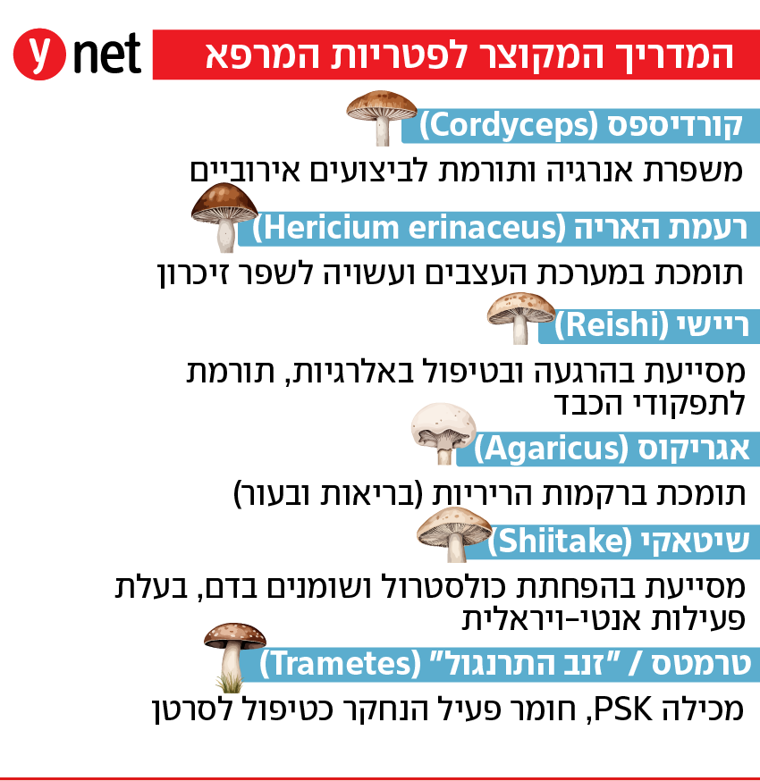 "חשוב להבין שרוב הפטריות עושות המון דברים. הפעילות העיקרית שלהן היא תמיכה במערכת החיסון – ויסות כאשר יש עודף פעילות (כמו אלרגיות ומחלות אוטואימוניות) או חיזוק במקרים של מחלות זיהומיות, דלקות וכו'.