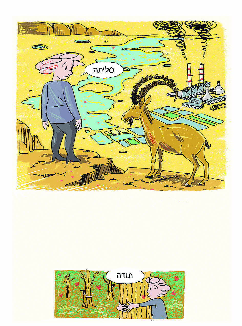 סליחה, ים המלח. סליחה שכבר אי־אפשר יותר לצייר אותך בפשטות כפי שציירנו אותך בילדות, כפי שאתה מקובע עדיין בדמיוננו, ראש קישוא עם פה פתוח לעבר הרי מואב ואדום. סליחה שהפכנו אותך מפלא עולם ומקור גאווה למקבץ שלוליות מרופט. סליחה שגרמנו לך להצטמק, לחלות ולהזדהם. סליחה שמכרנו אותך בזול כדי להעשיר את תאגיד הכימיקלים ואת משפחת עופר.