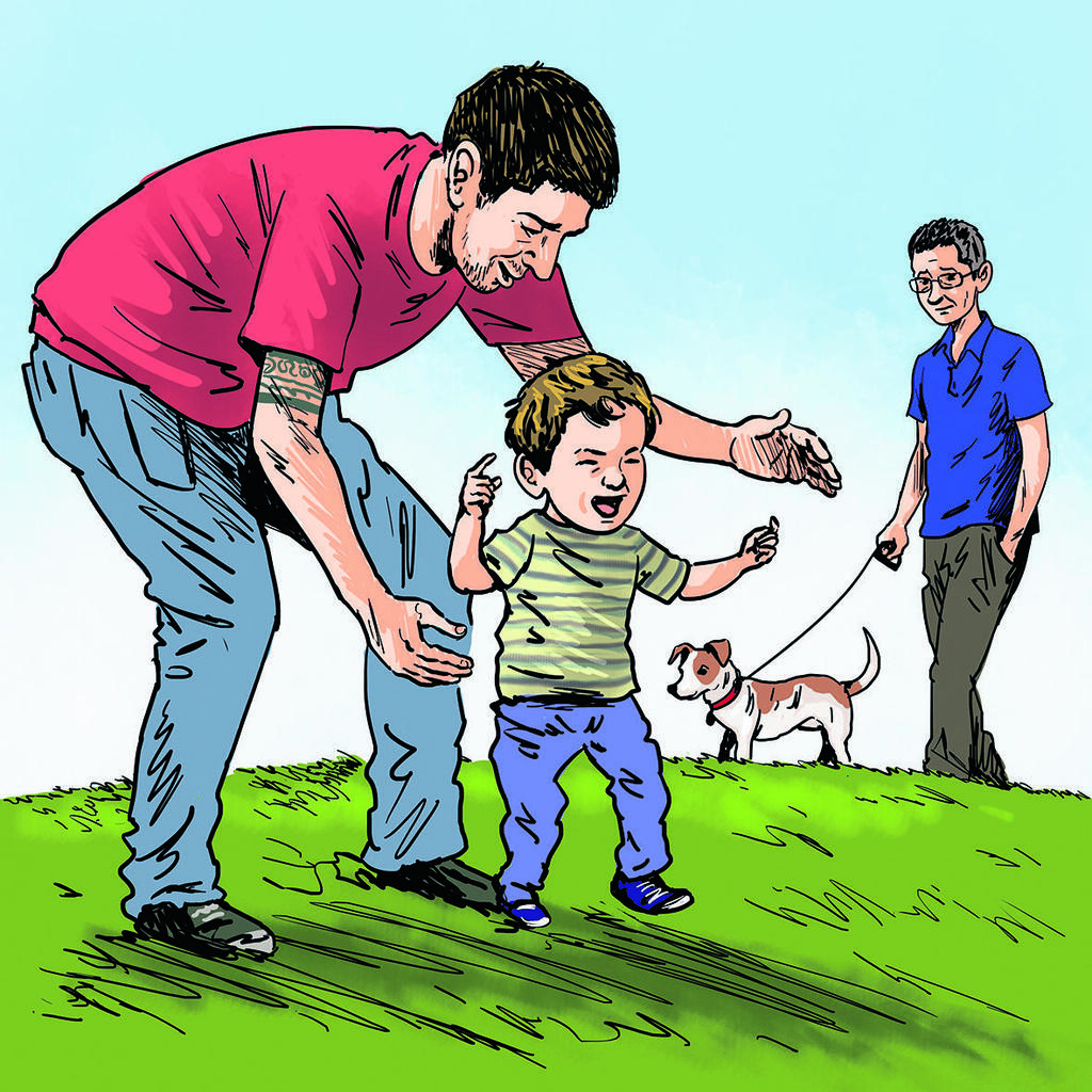 הנשימה שלי נעצרת – ואני יחד איתה – כשאני חולף בסתם יום, בסתם טיול עם הכלבה, בסתם גינת נדנדות ליד הבית שלי, ואני רואה שם לרגע, על הידיים של אבא שלו, את התינוק שלי.