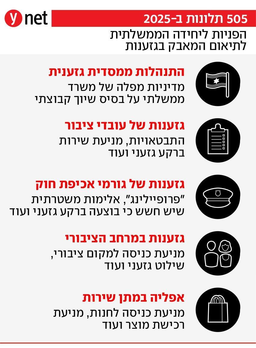 הסיפורים של א' וג' הם שתיים מתוך 505 תלונות שטופלו בשנה החולפת ביחידה הממשלתית לתיאום המאבק בגזענות - זינוק של 30% בהשוואה לשנת 2024, והמספר הגבוה ביותר של תלונות שהתקבלו ביחידה מאז הקמתה, לפני קרוב לעשור. ביחידה מייחסים את העלייה בתלונות למודעות הגוברת לפעילותה, וכן להארכת הוראת השעה המאפשרת ייצוג ללא עלות וללא תלות בזכאות הכלכלית בידי הסיוע המשפטי במקרים הנוגעים לגזענות. בעוד שסיפוריהן של א' וג' נוגעים להתבטאויות נגד יוצאי ברית־המועצות, מרכז הכובד של התלונות - 40% בסך הכל - נוגע לחברה הערבית והחרדית. 9% נוספים נוגעים לתלונות של יוצאי אתיופיה - יותר מפי ארבעה בהשוואה לחלקם באוכלוסייה.