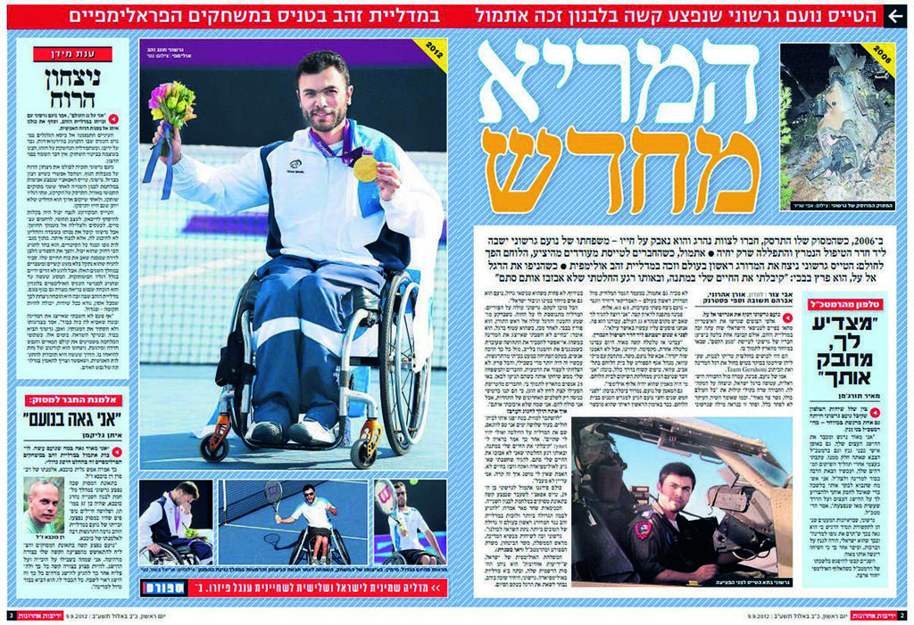 כל זוכה במדליה, ולמעשה כל משתתף במשחקים הפראלימפיים, הוא סיפור מעורר השראה של התמודדות עם קשיים והתעלות ספורטיבית ואנושית. אחד הסיפורים הגדולים ביותר הוא של טייס האפאצ'י נועם גרשוני, שהמסוק שלו התרסק ב-2006, חברו לצוות נהרג והוא נאבק במשך ימים רבים על חייו. שש שנים מאוחר יותר, הוא עלה על ראש הפודיום במשחקים הפראלימפיים בלונדון לאחר שזכה במדליית זהב בטניס. וכך נפתחה הכתבה על האירוע ב"ידיעות אחרונות": "אלפי הצופים שגדשו את האצטדיון מחאו כפיים לטניסאי הישראלי שזה עתה זכה במדליית הזהב, אולם קבוצה אחת בלטה ביציע: חבריו של גרשוני לטייסת 'מגע הקסם,' שבאו במיוחד מהארץ לתמוך בו. הם היו לבושים בחולצות טריקו לבנות, שעליהן שירטטו בבוקר בטוש כחול את דגל המדינה ואת הכיתוב Team Gershoni. אמו של נועם, פנינה, עמדה מול החבורה הישראלית, עטופה בדגל ישראל, וניצחה על המקהלה. החבורה שרה בקולי קולות את 'כל העולם כולו, גשר צר מאוד.' וכמו שאומר השיר, העיקר לא לפחד כלל. ופחד זו כנראה מילה שגרשוני לא מכיר. גם אתמול, במעמד הגמר המלחיץ, מול המדורג ראשון בעולם - האמריקאי דייויד ווגנר - נועם ניצח בשתי מערכות, .6:1 6:3אלוף".