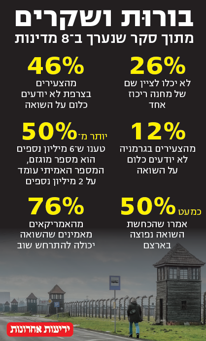 ביום השואה הבינלאומי, החל היום, ו-80 שנה לאחר שחרור מחנה המוות אושוויץ, מוכיחות תוצאות סקר חדש את הקביעה כי נראה שדבר לא נלמד מהשואה. לא בקרב הבוגרים ובמיוחד לא אצל הצעירים.