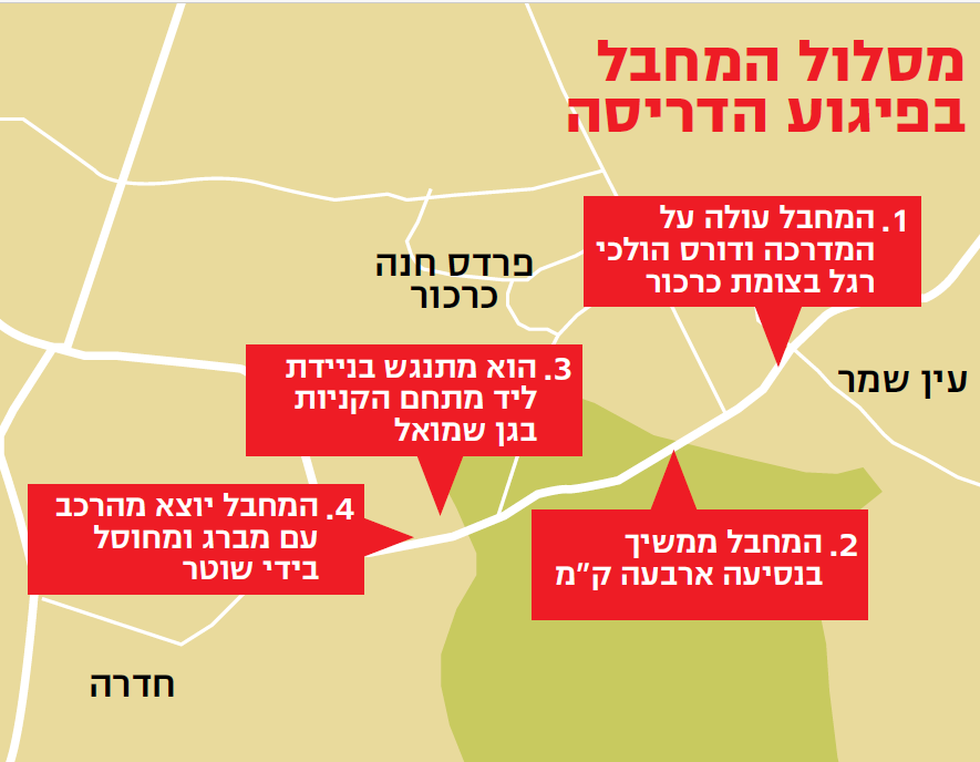זו הייתה הקריאה הראשונה שהגיעה אתמול, בשעה 16:18, לקו החירום 101 של מד"א, בעקבות פיגוע הדריסה בצומת כרכור. המחבל, בן 53 מאזור ג'נין, פגע ברכבו בכמה הולכי רגל בתחנת אוטובוס בצומת כרכור. 14 בני אדם נפצעו, בהם נערה בת 17 במצב אנוש ושני פצועים קשה. הנהג הדורס ניסה להימלט, נסע ארבעה קילומטרים, נעצר על ידי המשטרה בכניסה למתחם הקניות בגן שמואל ונוטרל בירי.