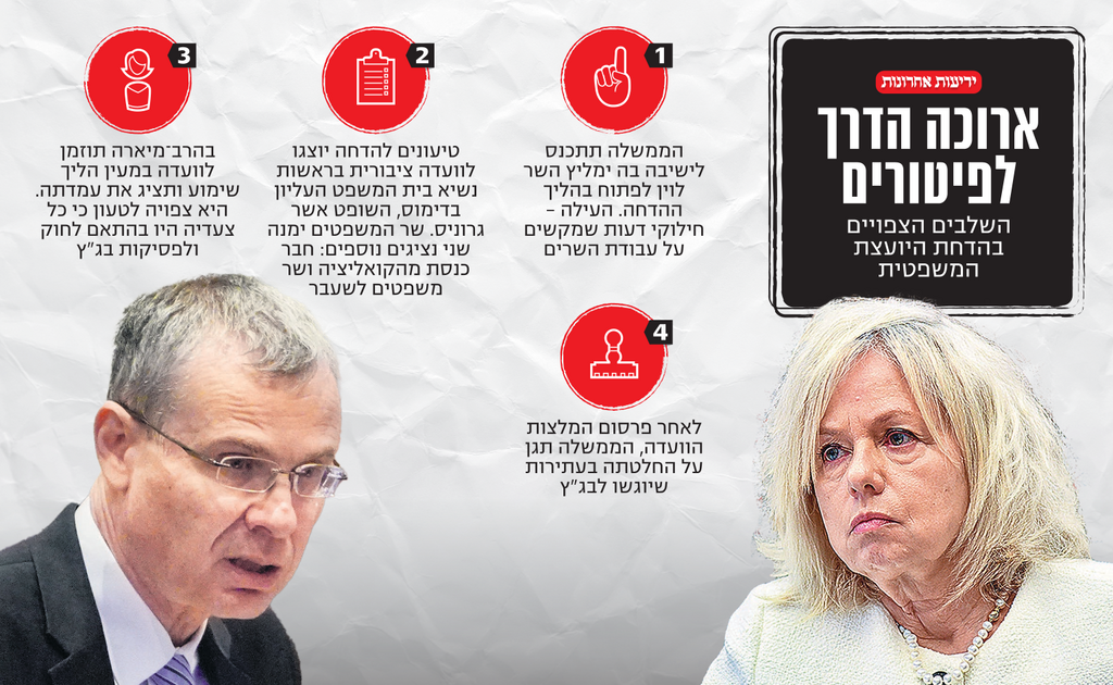 השר לוין התכוון להתחיל בהליכי ההדחה של מיארה מיד לאחר שיעביר את מתווה בחירת השופטים בעוד כשבועיים בכנסת, אלא שמספר אירועים בשבוע האחרון דחקו בו להניע את אירוע ההדחה. עם זאת, לשר לוין ברור שאף שהוא יביא בעוד שבועיים לממשלה את דרישת ההדחה שתקבל רוב, יש כמה מהמורות בדרך.
