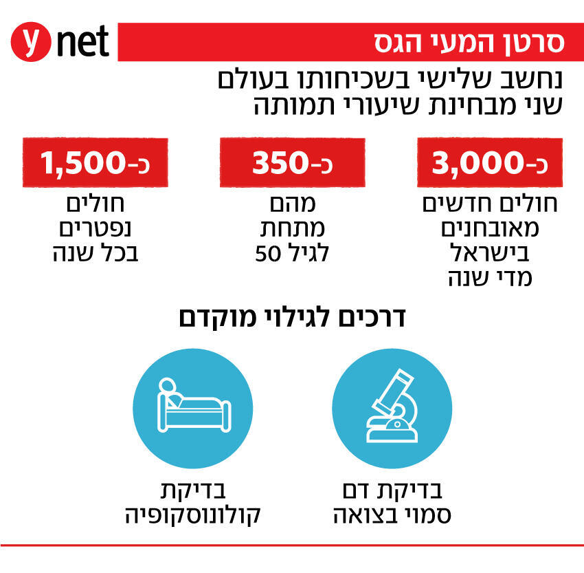 סרטן המעי הגס הוא הסרטן השלישי בשכיחותו בעולם, אך מדורג במקום השני מבחינת שיעורי התמותה. ב-2022 תועדו יותר מ-1.9 מיליון מקרים חדשים ברחבי העולם וכמעט 904 אלף מקרי מוות. במחקר שפורסם בדצמבר האחרון בכתב העת "Lancet Oncology" נמצא כי בעשור האחרון, שיעורי סרטן המעי הגס בקרב צעירים בגילי 49-25 עלו ב-27 מדינות מתוך 50 שנבדקו. בניגוד למחקרים קודמים, העלייה כבר אינה מוגבלת לצעירים ממדינות מערביות עשירות, אלא מתרחשת גם במדינות באמריקה הלטינית, באסיה ובמזרח אירופה. בישראל מאובחנים כ-3,000 חולים חדשים מדי שנה, מהם כ-350 צעירים וצעירות מתחת לגיל 50. בכל שנה נפטרים כ-1,500 חולים.