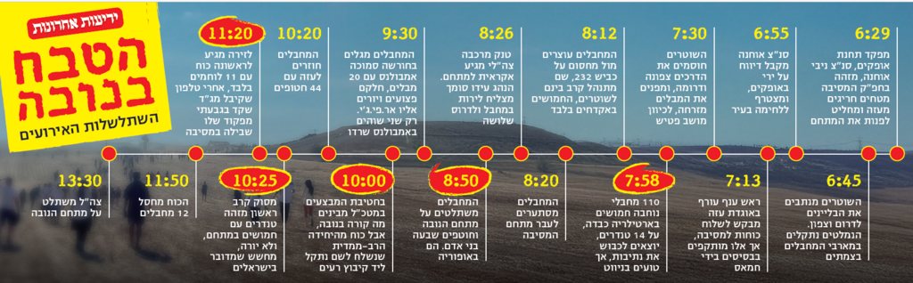 לשוטרים לא היה מושג שבעוד כשעה, דווקא אחרי שיכריזו שרוב מבלי המסיבה פונו, הם יהיו קו ההגנה הראשון והאחרון מול פלוגת נוח'בה חמושה בטילי RPG, מקלעים, רובי צלפים, תותחי נ"מ ו-14 טנדרים עמוסים ברוע מפלצתי. כ-110 מחבלים כללה הפלוגה הזו, שיצאה מהעיירה נוסיראת והייתה אמורה להגיע לנתיבות, אך מפקדיה טעו בניווט ונתקלו בהמולת העזיבה של מתחם הנובה.