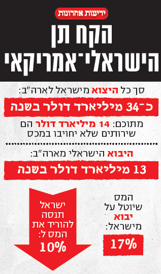 לפי האוצר, לא יוטל מכס על יצוא שירותים לארה"ב. ההחלטה לבטל את המכס על יבוא מוצרים חקלאיים מארה"ב בשווי חצי מיליארד שקל בשנה תישאר בתוקף.