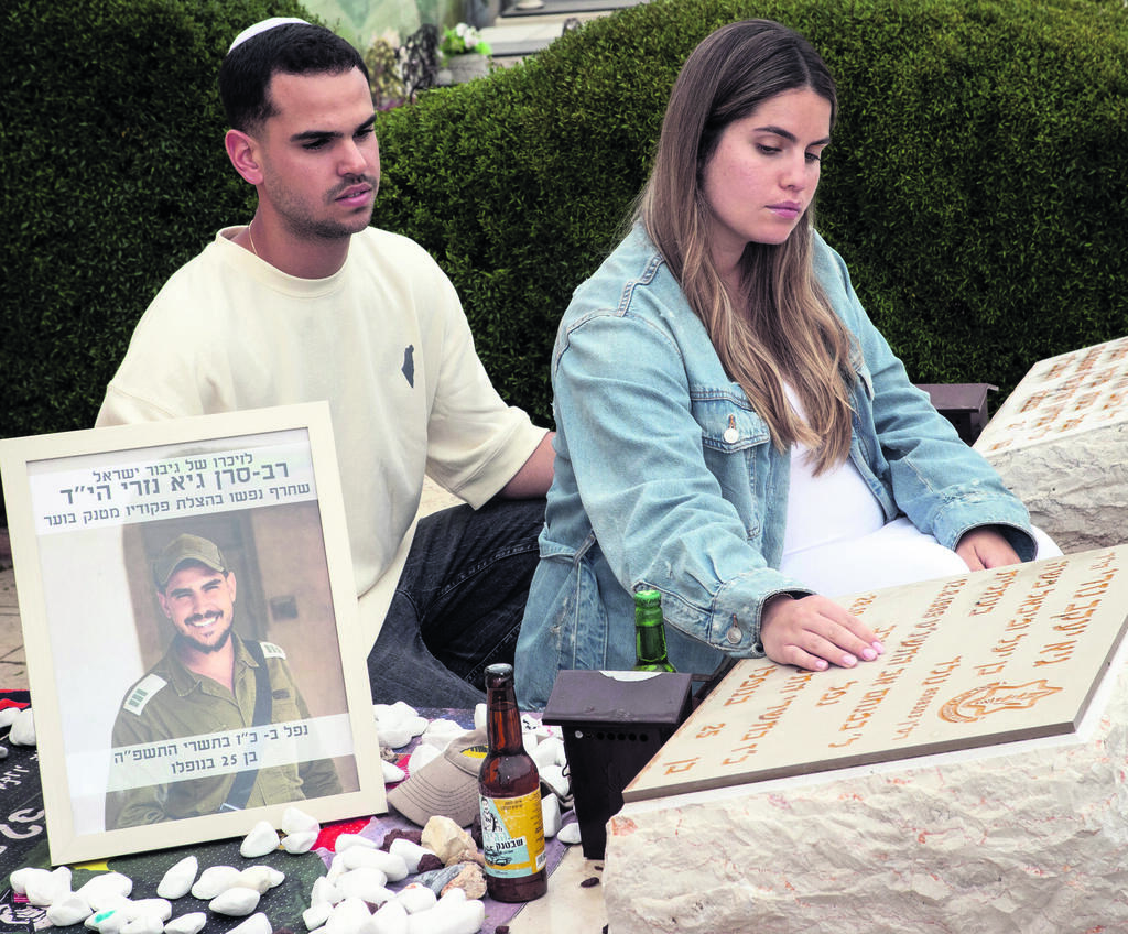 בזמן שהאחים מדברים, תמר ממשיכה לנקות את המצבה ובודקת שהכל במקום: "אני בחודשי היריון מתקדם. להגיע לפה לחלקה של גיא, להבין שעוד מעט אהיה אימא בעזרת השם, וגיא לא יהיה לידינו, זה מטלטל מאוד", היא מספרת. "יום לפני שאחי נהרג, הרגשתי שמשהו רע קורה. יום לפני שהוא נפצע התעוררתי בבהלה, ירדתי למטה, לסלון, ואמרתי לאמא 'את לא מאמינה, חלמתי שגיא מת'. אמא ואבא ניסו להרגיע אותי, אבל הרגשתי שמשהו רע קורה לו. ככה זה, קשר של תאומים".