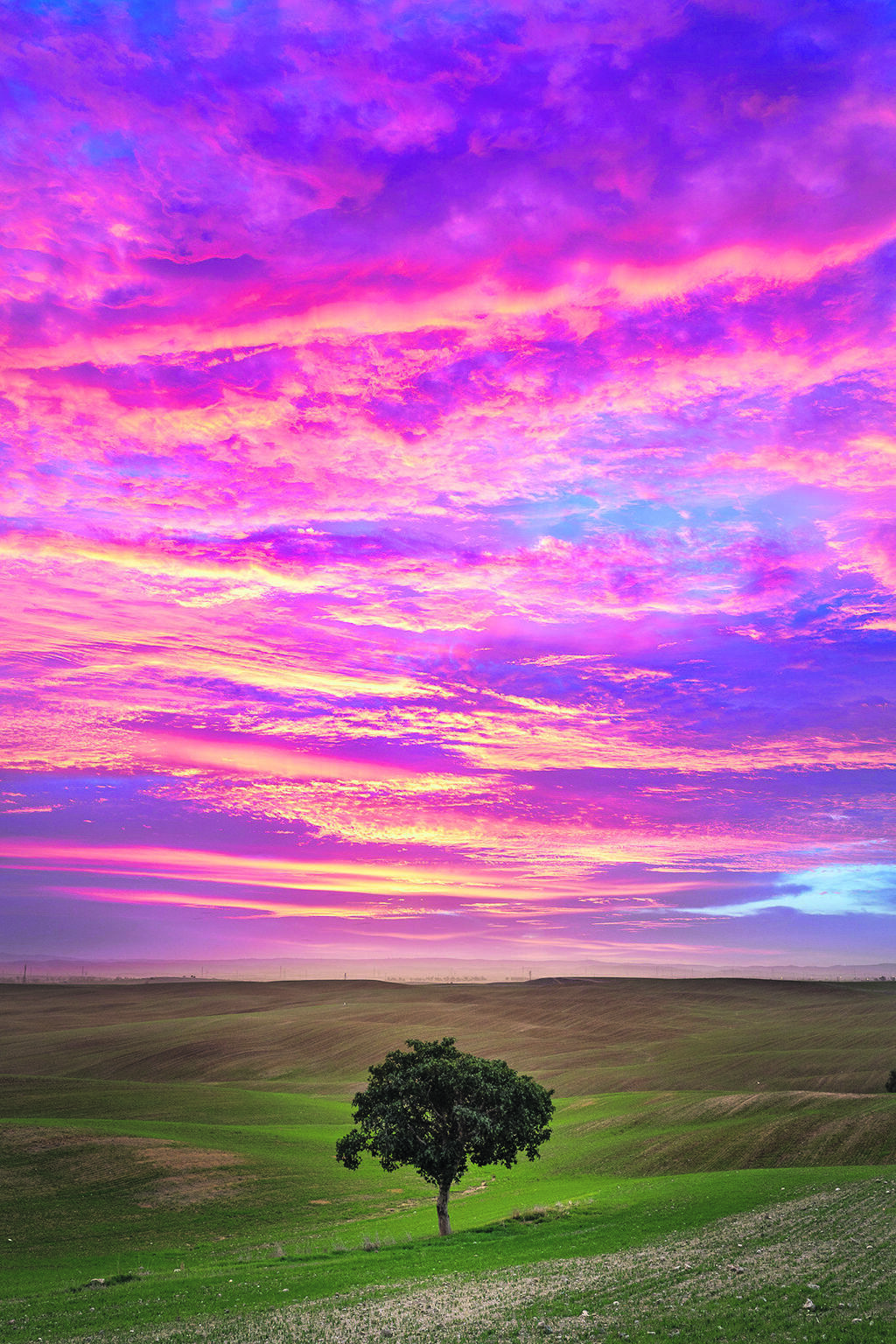 בימי זריחה מרהיבים הוא כוכב אמיתי: עומד במרכז השדה, עטוף עננים צבעוניים. כל מה שנדרש ממני הוא להרים מבט לשמיים, לזהות בוקר מבטיח — ולצאת לבקר אותו.