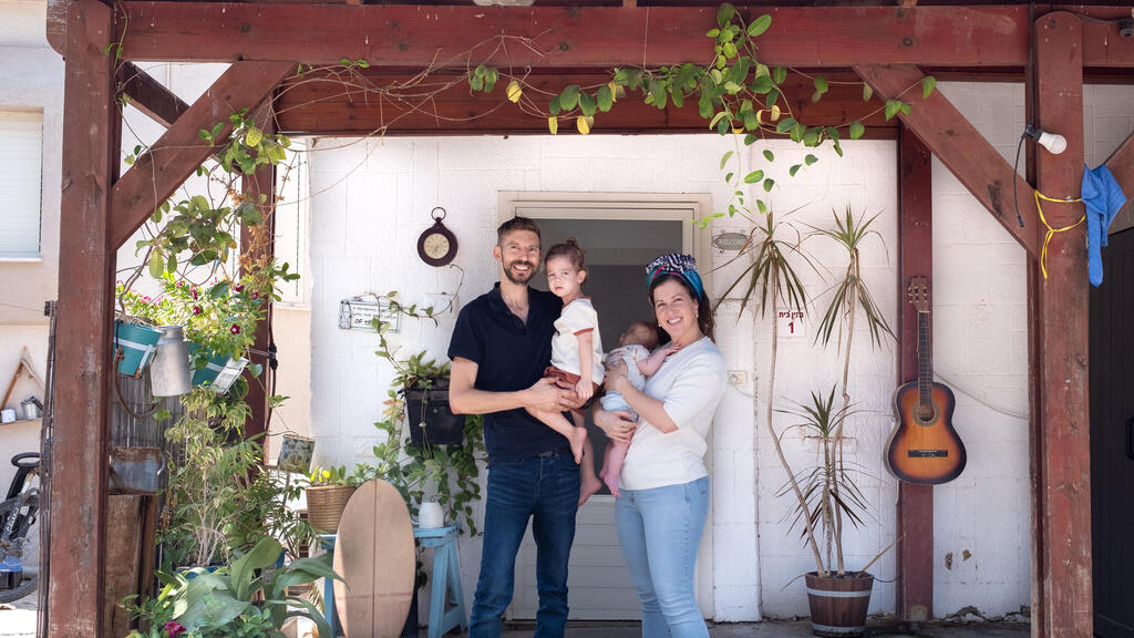 בצילום: אורי (37), מיכל (36), מעין (שנתיים וחצי), עומר (3 חודשים)