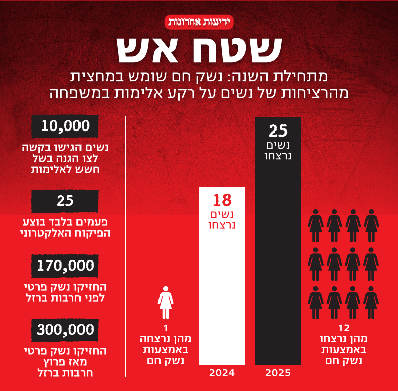מניין הנשים שנרצחו מנשק חם בשנת 2025 עלה אתמול ל-12, עם הירצחה של אבו-גאנם. מדובר בגידול מדאיג ביחס לשנה הקודמת, שבה אישה אחת בלבד נרצחה כתוצאה משימוש בנשק חם, במקרים של אלימות בתוך המשפחה. לפי מעקבי שדולת הנשים ופורום מיכל סלה, מאז תחילת השנה נרצחו בנשק חם על רקע אלימות מגדרית: עאישה אבו-ואדי, שורוק חאלד אלהואשלה, אסתר כהן, סחר אבו-חג'אג', רוית גל נחמד, עאישה קבעה, שריהאן משלב, ג'יג'י אלהוזייל, הודיה פדידה, שתי נשים נוספות ששמן לא פורסם, וכן וופא אבו-גאנם שנורתה אתמול.