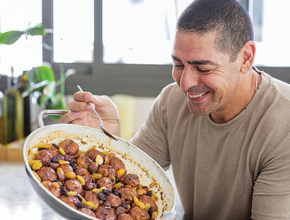 5. עשר דקות לפני סוף הבישול, לסדר את הערמונים בין הקציצות.