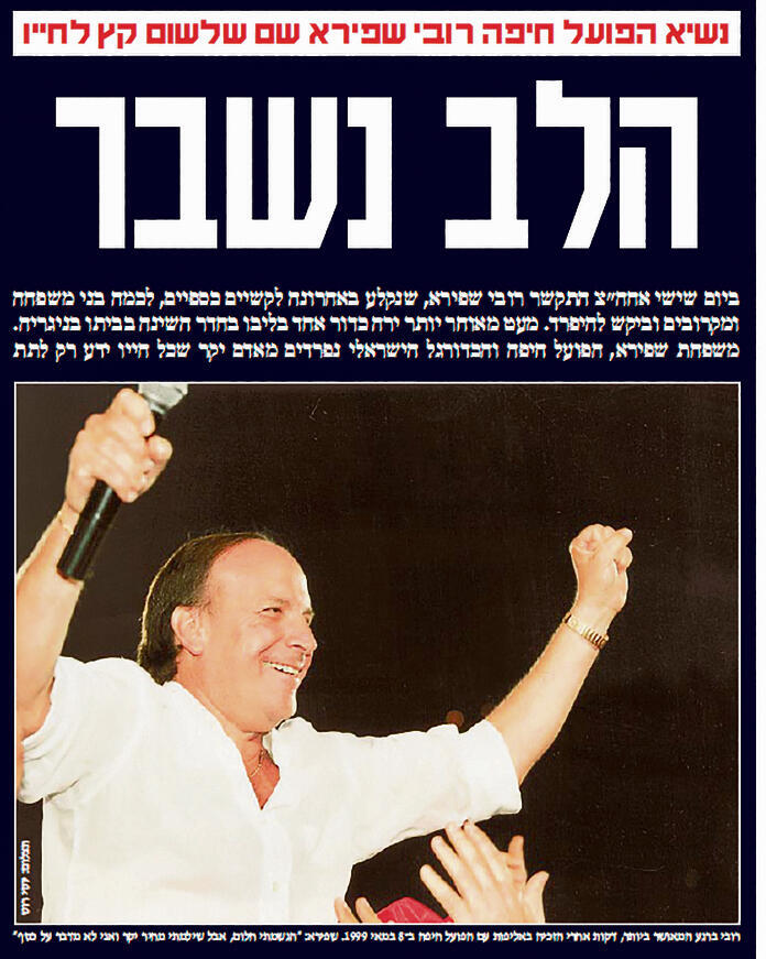יום שישי, 14 בדצמבר 2001, השבוע לפני 24 שנה. שחקני הפועל חיפה סיימו את הארוחה בבית המלון בת"א, שבו שהו לקראת המשחק נגד עירוני ראשל"צ למחרת, וכאשר יצאו מחדר האוכל, קצת אחרי השעה שמונה בערב, הם שמעו את הבשורה המרה: הבעלים של הקבוצה רובי שפירא שם קץ לחייו בביתו בניגריה. חצי שעה מאוחר יותר ביקש מהם המנהל אפרים גבאי לאסוף את חפציהם מהחדרים ולעלות על האוטובוס, שהחזיר אותם לחיפה. המשחק בראשל"צ נדחה, ועל עתיד הקבוצה, שכבר אז היה לוט בערפל, נפל ענן שחור כבד.