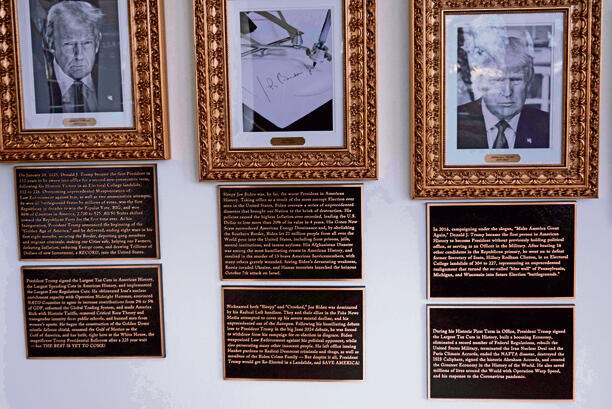 האמריקאים מתלוננים על יוקר המחיה והסקרים מעידים על דעיכה בתמיכה, אבל הנשיא טראמפ ממשיך להתמקד בעיצוב מחודש של הבית הלבן – ולתערוכת "מצעד התהילה הנשיאותי" של דיוקני הנשיאים הוסיף לוחיות תיאור שמזכירות ציוצי נקמה. על קלינטון נכתב ש"אשתו הפסידה לטראמפ!", על ביידן ש"למרות הכל, טראמפ ינצח שוב ויציל את אמריקה!" הלוחיות שנתלו מתחת לכל דיוקן בתערוכה הן תוספת חדשה שנחשפה השבוע, והן אמורות לכאורה לתאר את פועלם של הנשיאים – אם כי ניכר שרבים מהם נכתבו על יד טראמפ עצמו. גם אובמה לא זוכה לתיאור אדיב: "ברק חוסיין אובמה היה אחת הדמויות הפוליטיות המפלגות ביותר בהיסטוריה האמריקאית". הטון האישי הגיע עד ללוחית של אנדרו ג'קסון: "זכה ליחס תקשורתי לא הוגן, אך לא כמו אלו שקיבלו לינקולן וטראמפ". בתוך כך, הבית הלבן הודיע כי ״מרכז קנדי״ המפורסם שנקרא על שם ג׳ון קנדי, ייקרא מעכשיו ״מרכז טראמפ-קנדי״