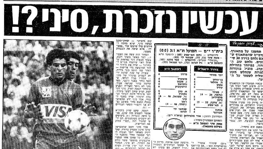 אלא שהמעידה הייתה כולה תוצרת ירושלים. אלי אוחנה נגח בדקה ה-22 למשקוף וסמי מלכה רשם החמצה מסמרת שיער בדקה ה-62, ואז נכנס לפעולה משה סיני. בדקה ה-72 חטף גילי לנדאו כדור באגף הימני, מסר קדימה לשום מקום, אבל סיני לא ויתר והצליח להציל את הכדור לפני שהוא יוצא לחוץ. הקשר התקרב לשער, וכשהשוער יוסי מזרחי ציפה להגבהה לדב רמלר, החליט סיני להפתיע וסובב נפלא לחיבור הנגדי. שקט השתרר בימק"א: האוהדים ידעו שמכבי חיפה מובילה 0:1 ביהוד, והאליפות הולכת ומתרחקת מירושלים. שתי דקות עברו, ורפי שמואל פרץ באגף שמאל, הגביה לכיוונו של סיני, שהניף רגל ימין אדירה ושלח את הכדור לחיבורים. הדקות האחרונות כבר היו גארבג'-טיים, כששבתאי לוי קבע 0:3 קליל, והשער המצמק של נחום תא-שמע כבר לא ניחם אף אחד.