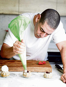 1 מכל שמנת מתוקה כף אבקת סוכר מקציפים היטב ומעבירים לשק זילוף.