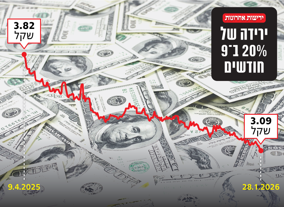 קריסת הדולר בישראל נמשכת. אתמול ירד שערו ב-0.41% ונקבע על 3.09 שקל. שער זה מתקרב לשער הנמוך ביותר מתחילת שנות האלפיים שנרשם ב-2021, אז נסחר הדולר ב-3.07 שקל.