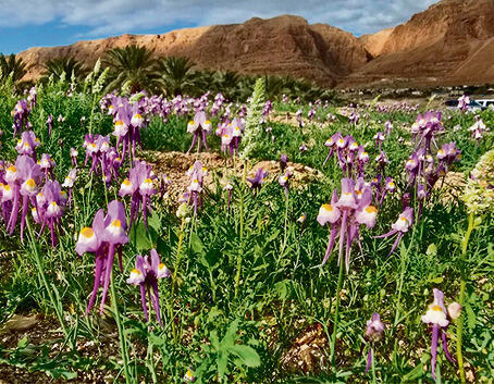 לאן: מי היה מאמין שלצד כביש 90, מעל חוף ים המלח ותחת המצוקים המדבריים, צומחים בימים אלו פרחים רבים וססגוניים כל כך. מי הגשמים שירדו באזור יצרו מרבדי פריחה בשלל צבעים: פשתנית ססגונית סגולה בסגול, חומעה בוורוד, מנתור המדבר בוורוד עדין ועוד.