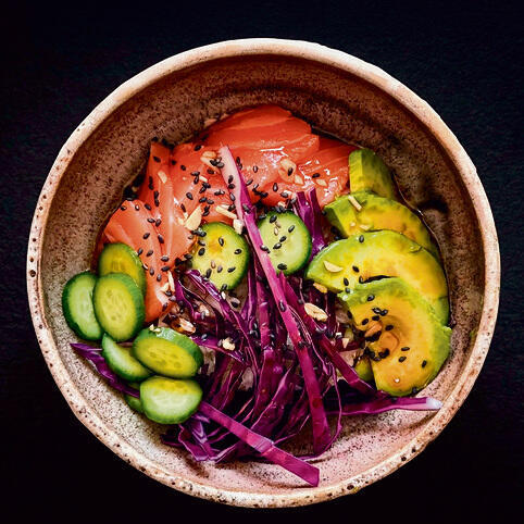 קערת סלמון, אבוקדו ו-ויניגרט יפני