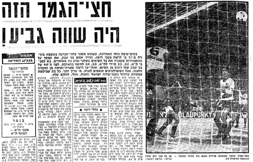 הכותרת ב"ידיעות אחרונות" הייתה אמנם "חצי הגמר הזה היה שווה גביע!", אבל גם בגמר הייתה דרמה לא קטנה. בקרב על התואר חיכתה הפועל ת"א, שניצחה בחצי הגמר את הפועל לוד 0:3 בהארכה - דרבי תל-אביבי ראשון בגמר אחרי 16 שנה - והוא הוכרע בעזרת שער היד המפורסם של גילי לנדאו. ומכבי חיפה? זאת הייתה רק ההתחלה. עונה לאחר מכן הגיע למועדון שלמה שרף, שהוביל את הקבוצה לאליפות ראשונה בתולדותיה בדרך ל-15 בסך הכל.