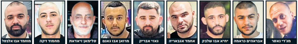 הנרצחים בתקופת המלחמה הם: מוחמד אבו אלבסל (28), תושב טמרה, נורה למוות לאחר שירו לעברו 20 כדורים. סלימאן זיאדאת (60), תושב נצרת, נורה למוות בתוך רכבו כשהגיע לחניון ביתו. מחמוד דקה (22) נורה בשכונה שבה הוא מתגורר ואחרי מספר ימים מת מפצעיו. אחיו מוחמד נרצח לפני כחודשיים באזור ירושלים. גאזי אבריק (25), תושב אבו סנאן, נורה למוות בתוך רכב. אבראהים כראמה, (25) תושב אום אל פחם, נורה למוות לעיני בתו ואחותו. יחיא אבו שלבק (26), תושב כפר עקב, נורה למוות בעיר נצרת. מג'די נאסר (37), תושב טירה, נורה למוות בתוך רכב כשהיה בדרך לעבודתו בתחום הגינון. מרואן אבו גאנם (25), תושב רמלה, נורה למוות כשיצא מסעודת אפטאר אצל חברים. אחמד אגבאריה (28), תושב מושירפה, נרצח מירי.