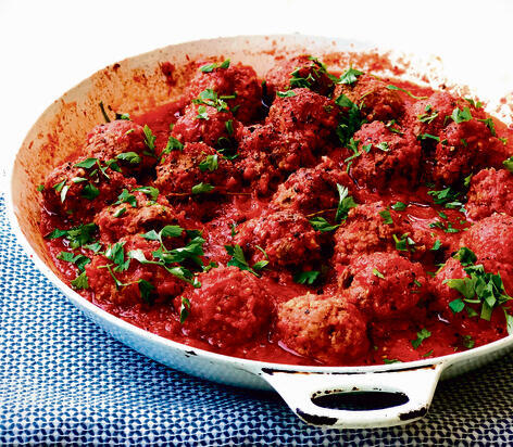 3. בינתיים מגלגלים את תערובת הבשר לכדורים קטנים ומעבירים אותם בזהירות בזה אחר זה לרוטב המבעבע. במידת הצורך מוסיפים מים כדי כיסוי.