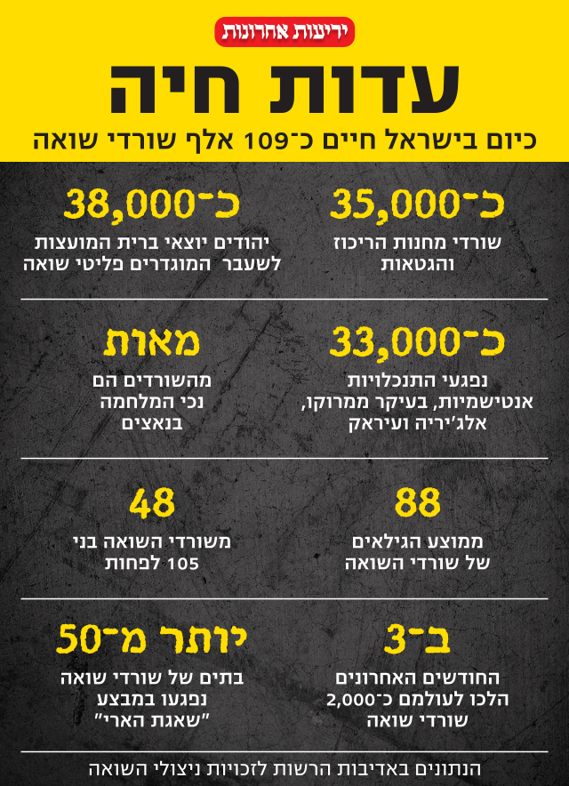 ערב יום השואה תשפ"ו, חיים בישראל כ-109 אלף שורדי ושורדות שואה - כשליש ממספר הניצולים שחיו בישראל מאז קום המדינה.